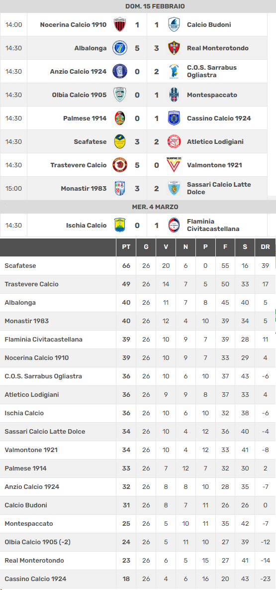 Ischia Calcio 15/02/2026