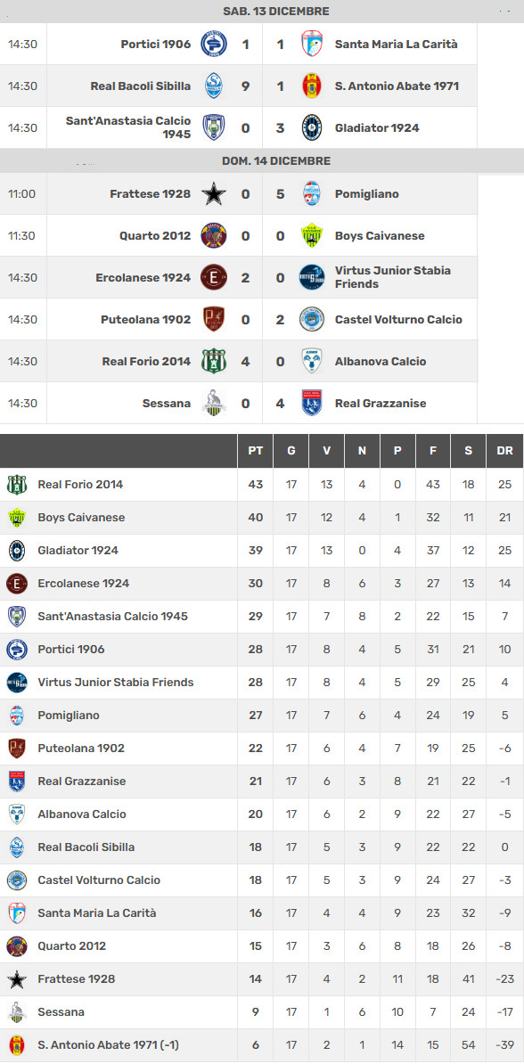 Forio Calcio 14/12/2025